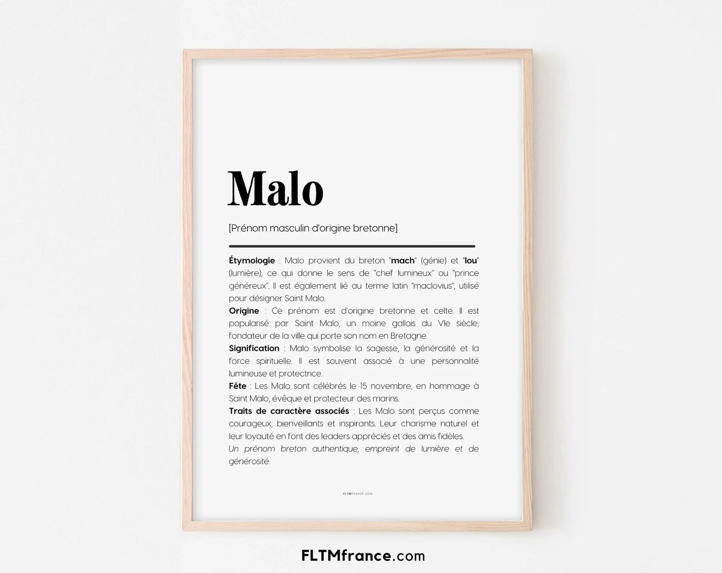Affiche prénom Malo à imprimer – Signification, origine et traits de caractère