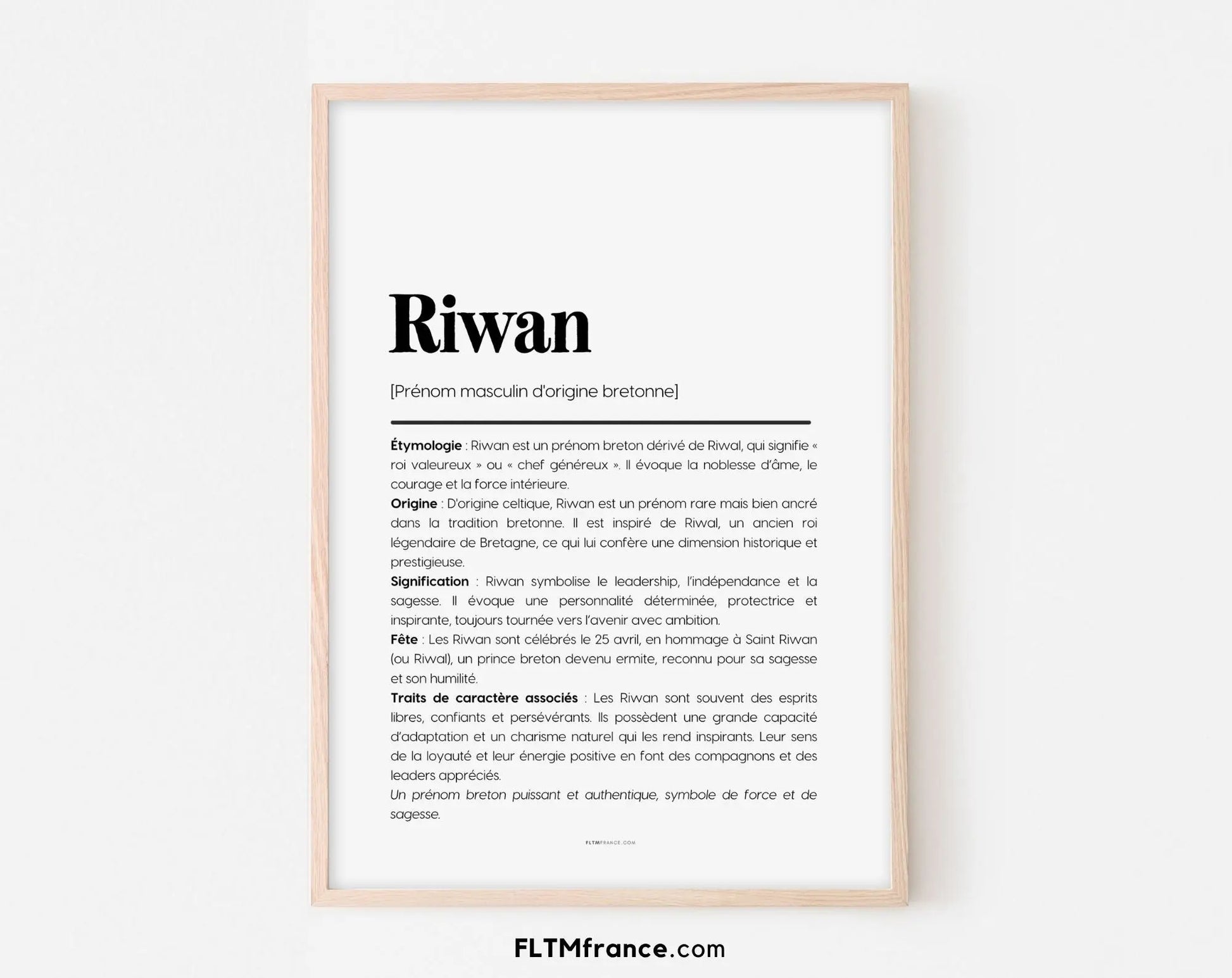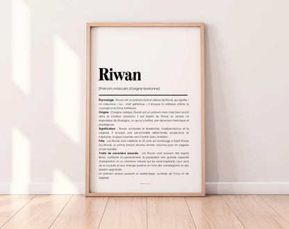 Affiche prénom Riwan à imprimer – Signification, origine et traits de caractère
