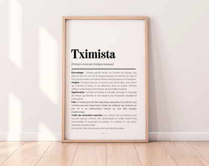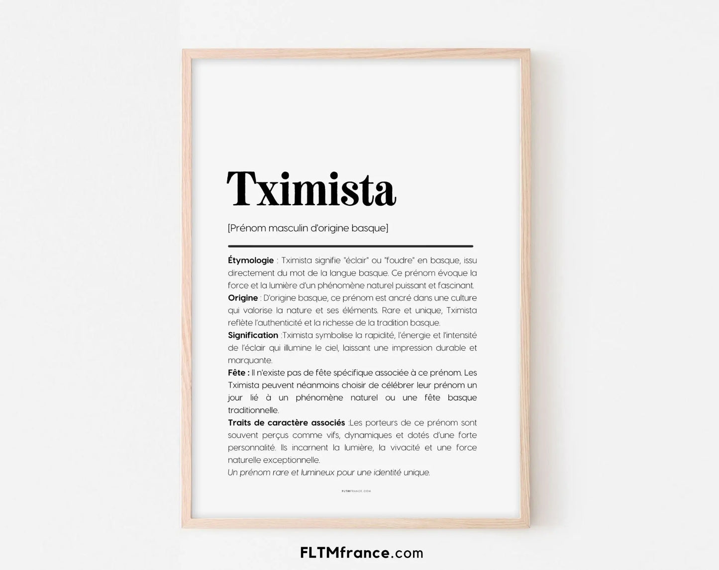 Affiche prénom Tximista à imprimer – Signification, origine et traits de caractère