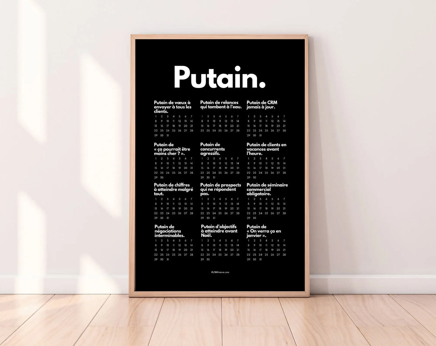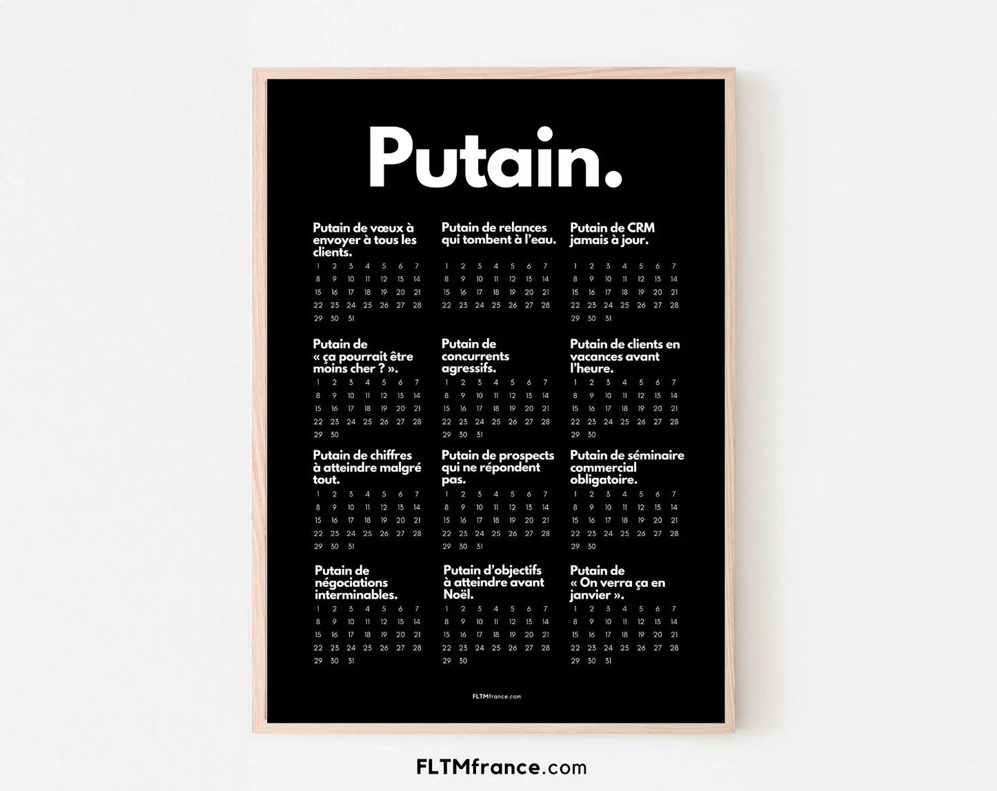 Parce qu’un calendrier classique, tout le monde en a déjà un. Avec le Calendrier Putain personnalisé, tu ajoutes une touche d’humour et de personnalité à ton organisation. Il devient :