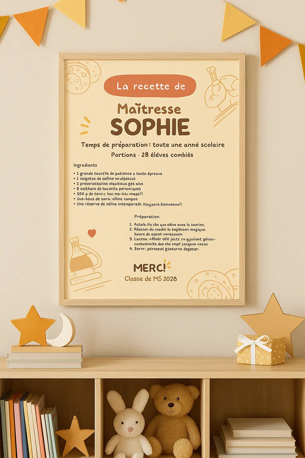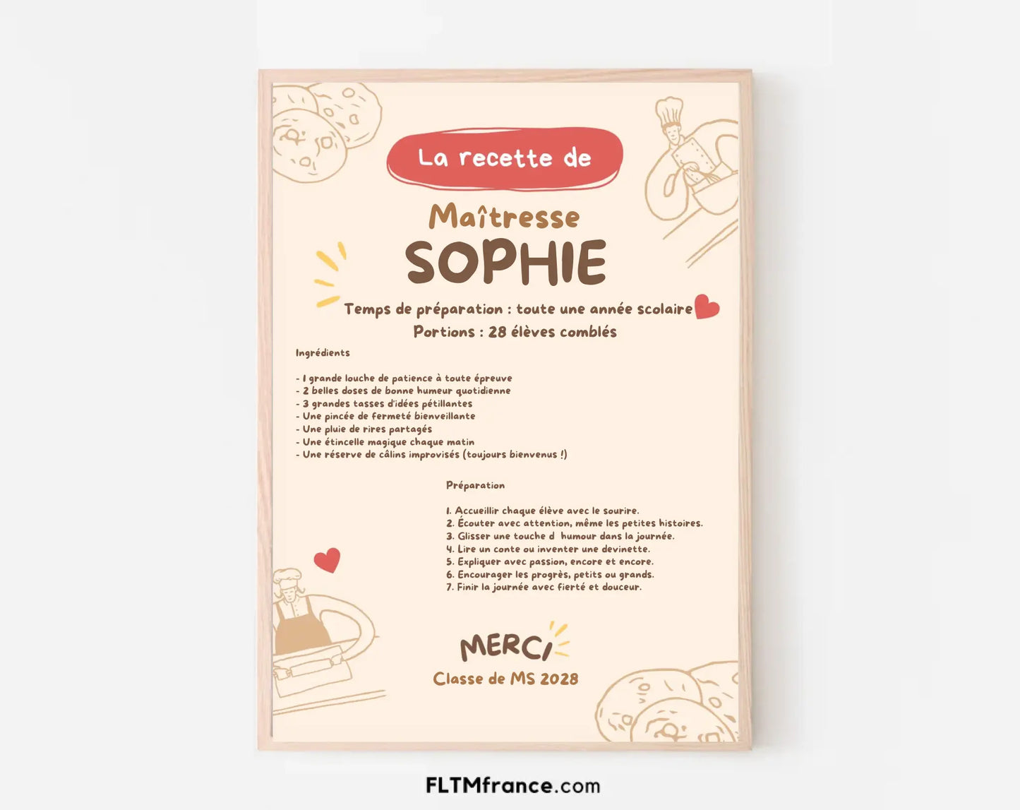 🍪 Affiche Recette de Maîtresse personnalisée – Cadeau original de fin d’année scolaire
