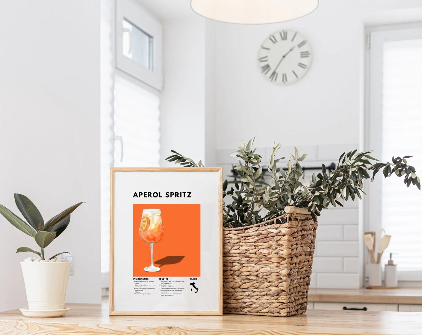 Notre affiche Aperol Spritz a été soigneusement conçue pour représenter fidèlement les couleurs vibrantes et l'énergie de ce cocktail emblématique. Avec des teintes orangées qui évoquent la douceur de l'Aperol, associées à des nuances claires qui rappellent le Prosecco et l'eau pétillante, cette affiche est un véritable régal pour les yeux. Elle est idéale pour décorer une cuisine, un bar à domicile, ou même un salon, apportant une ambiance chaleureuse et conviviale à n'importe quel espace.
