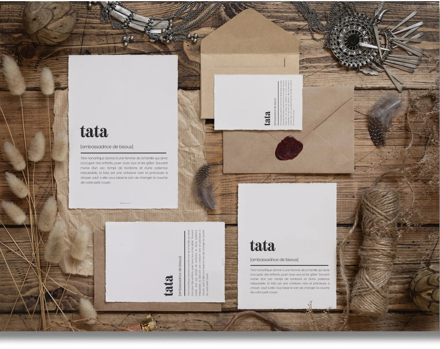 La carte de définition tata est bien plus qu'une simple carte. Elle est un hommage aux femmes spéciales dans nos vies qui jouent le rôle de tatie avec amour et dévouement. En choisissant cette carte, vous offrez une manière unique et touchante de montrer votre appréciation. La possibilité de personnaliser la carte après impression permet de la rendre encore plus significative.