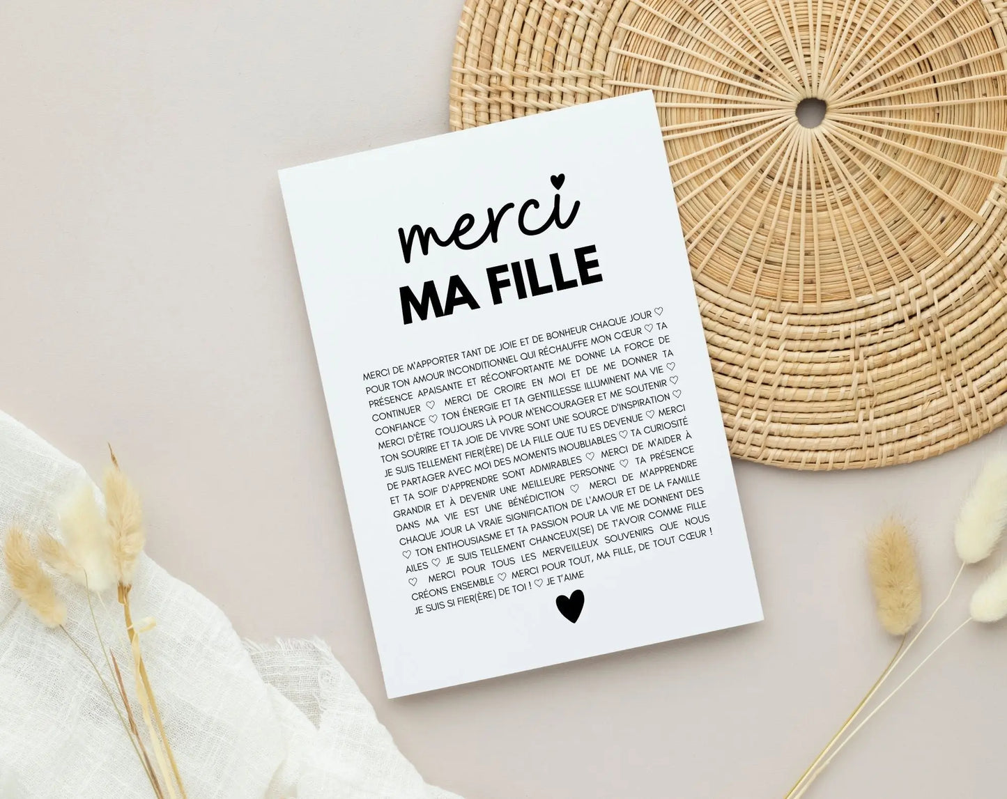Carte Merci ma fille - Idée cadeau anniversaire pour sa fille