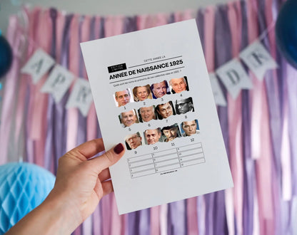 Atteindre les 100 ans est un événement extraordinaire, une étape exceptionnelle que peu de personnes ont la chance de vivre. Organiser une fête pour un centenaire est une occasion unique, qui mérite des moments de joie, de partage et d’émotion. Notre jeu anniversaire 100 ans à imprimer est l'outil parfait pour ajouter une touche ludique à cette journée spéciale, en rassemblant toutes les générations autour d'activités amusantes et interactives. Ce jeu est facile à organiser et garantit des moments inoubliables pour tous les invités.