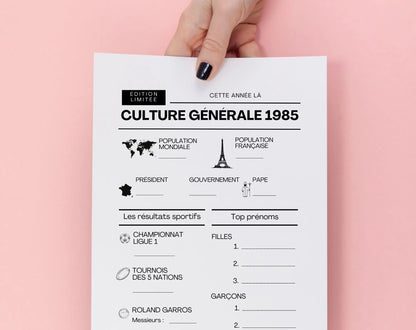 Notre jeu anniversaire 40 ans est conçu pour plaire à tous. Que vous souhaitiez organiser un jeu de quiz, des défis amusants ou des animations plus originales, nous avons pensé à tout. Avec différentes variantes et niveaux de difficulté, vous pouvez l’adapter à votre groupe d’amis ou à votre famille pour créer des souvenirs inoubliables. De plus, notre concept est entièrement fais-le-toi-même, ce qui signifie que vous avez le contrôle total sur l’organisation de votre animation.