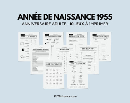 Jeu anniversaire année 1955 - 10 jeux à imprimer pour fêter les 70 ans