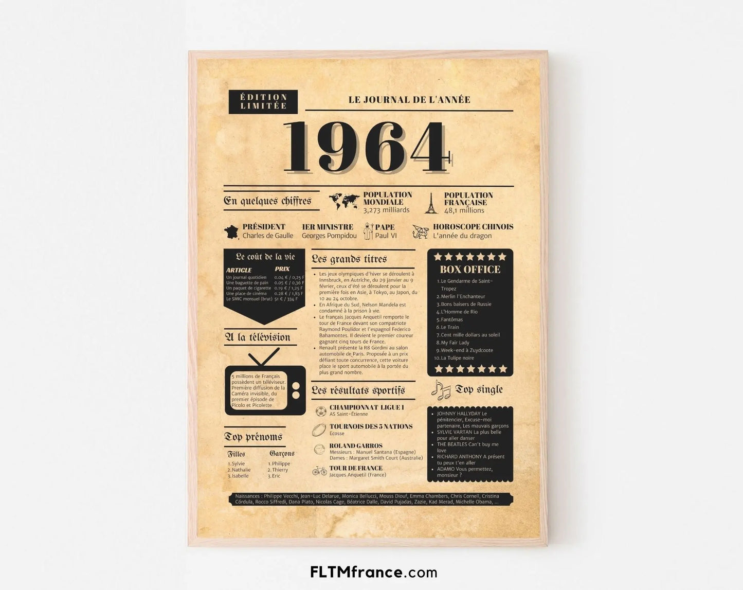 Journal de l'année 1964 - Affiche année de naissance