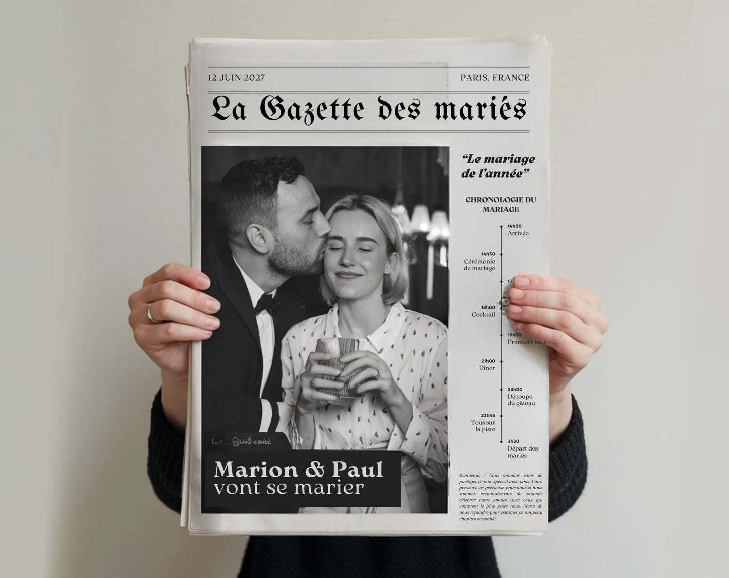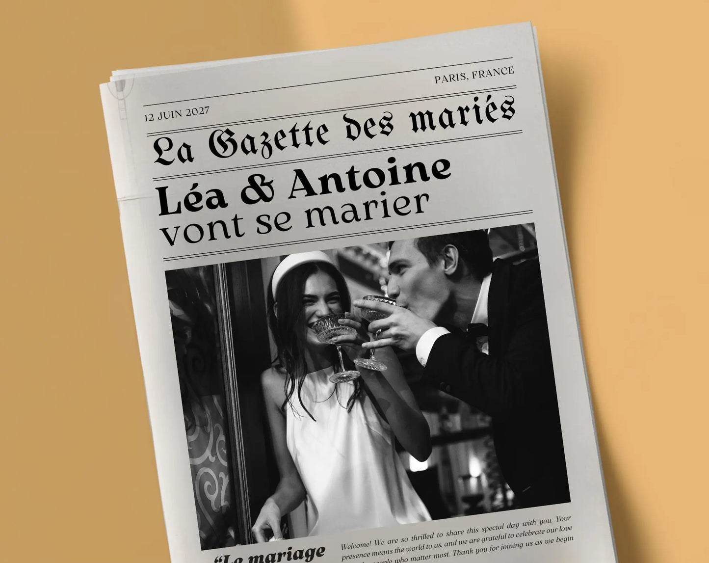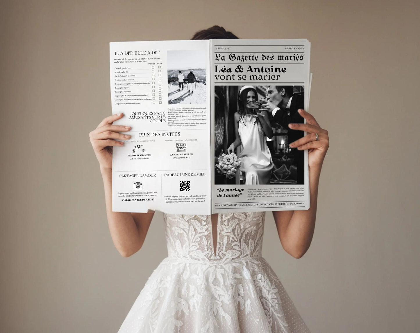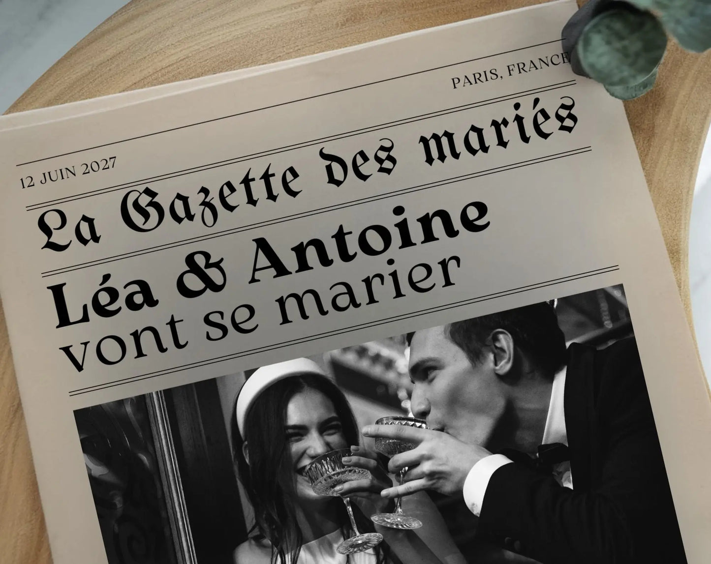 La Gazette des mariés à personnaliser - 4 pages pour créer un journal de mariage