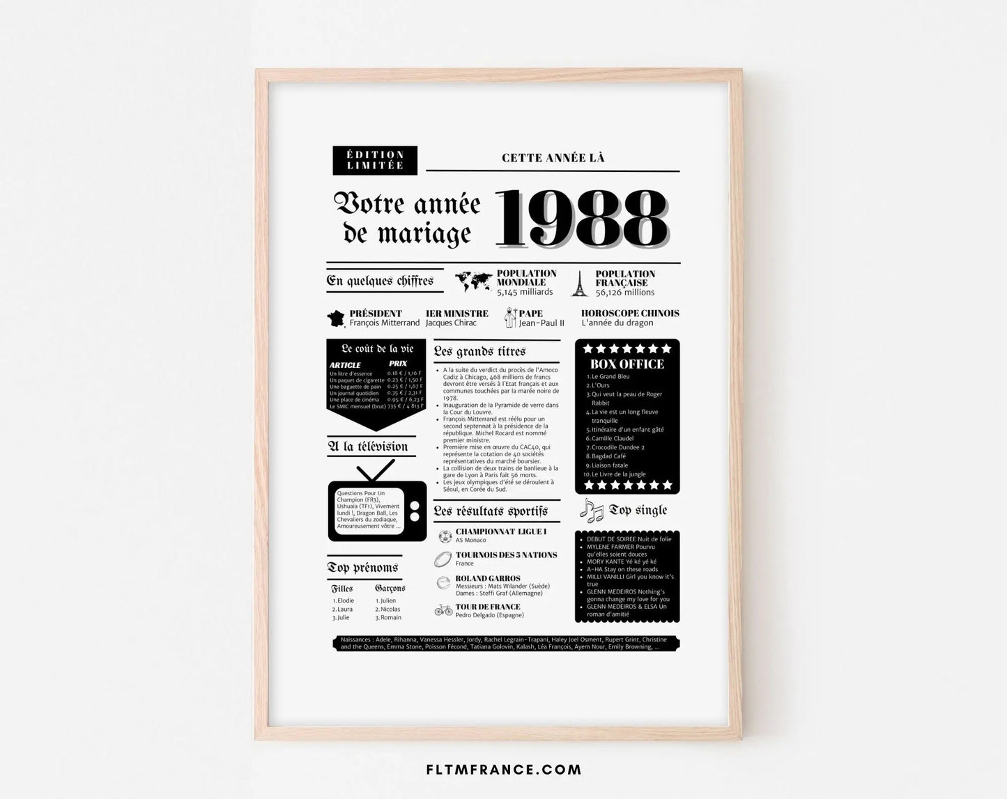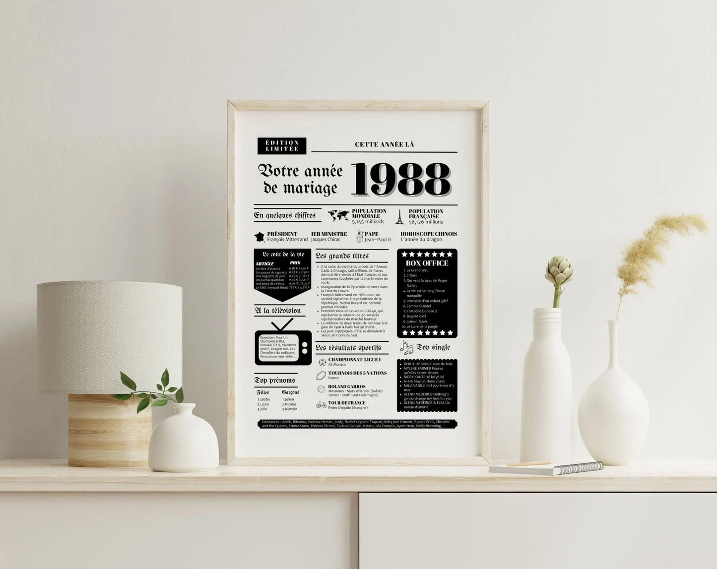 Affiche année de mariage 1988 - Un Souvenir Unique et Nostalgique