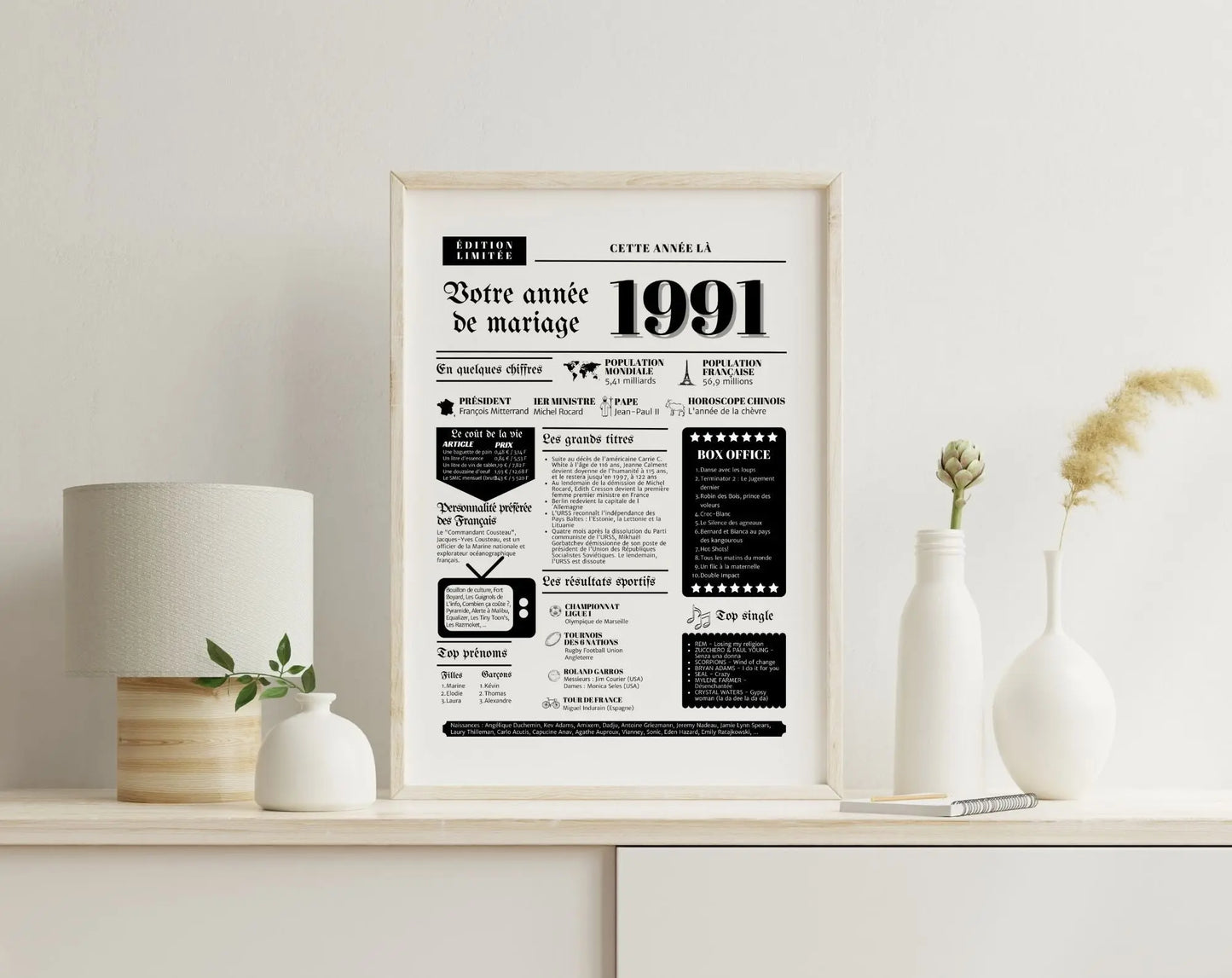 Affiche année de mariage 1991 : un souvenir intemporel