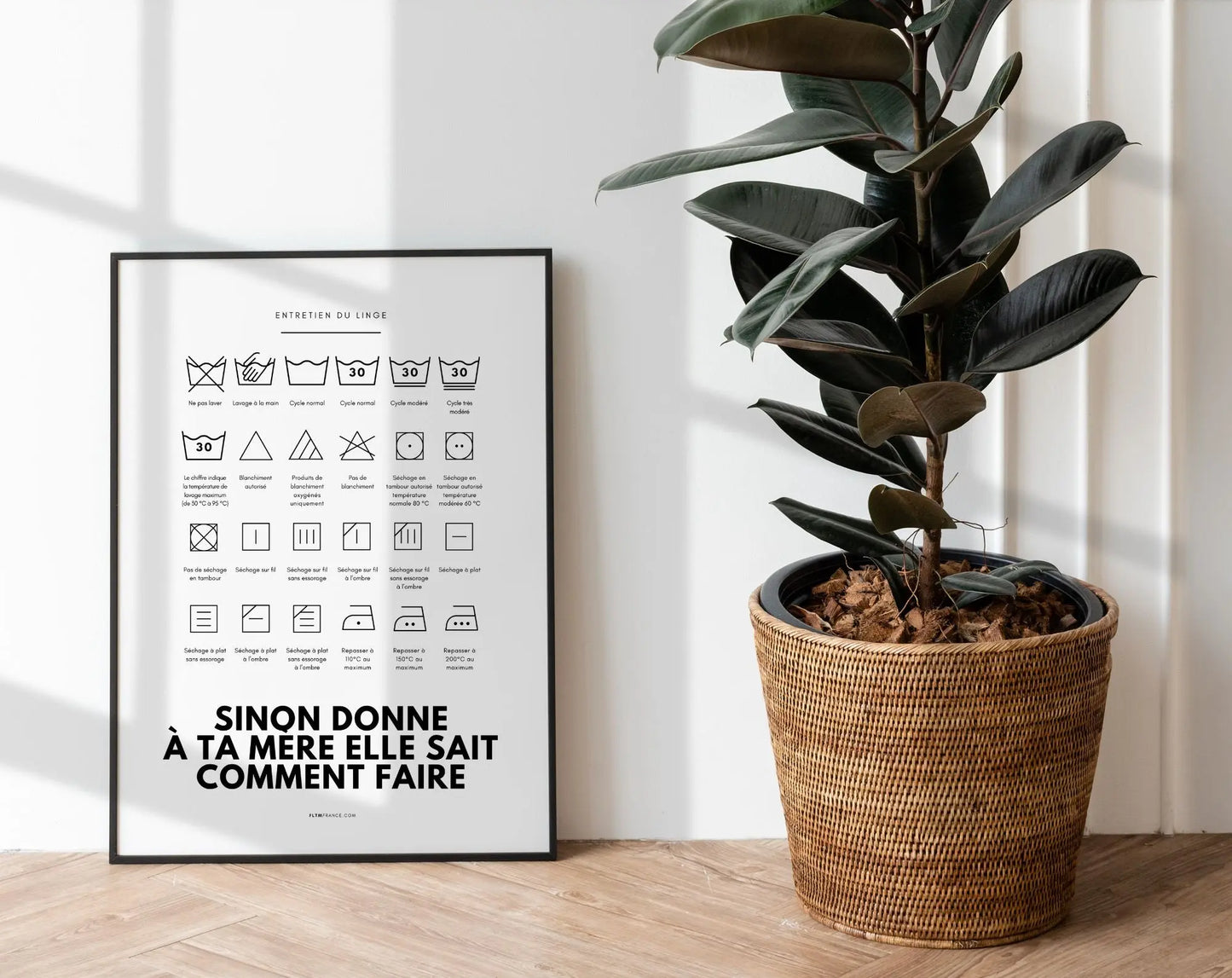 Si vous cherchez à ajouter un peu de caractère à votre buanderie tout en incorporant une note amusante, notre affiche 'Sinon donne à ta mère' est la solution parfaite. Conçue pour apporter un sourire chaque fois que vous faites la lessive, cette affiche digitale est non seulement pratique mais aussi pleine d'esprit, rappelant avec humour que parfois, les meilleurs conseils viennent de maman.