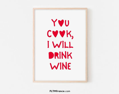 Affiche You cook, I will drink wine – Poster cuisine déco drôle à imprimer